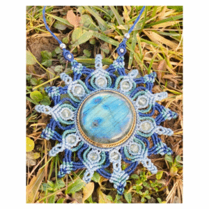 Pièce Unique Mandala en Micro-Macramé avec une magnifiqueLabradorite.