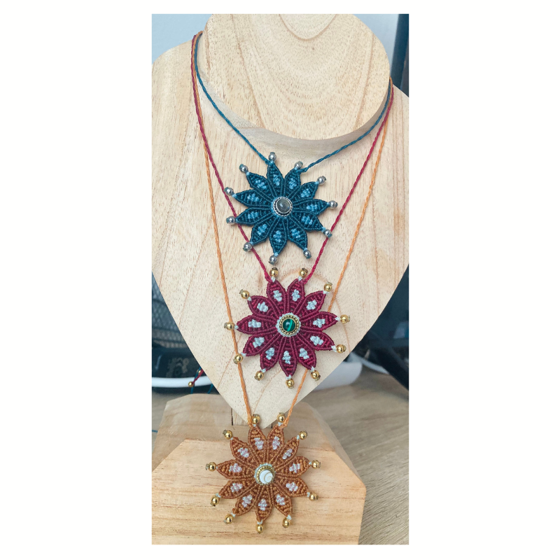 Crée ton propre collier Flower en micro-macramé grâce à notre kit DIY complet. Matériel, tutoriel détaillé et couleurs harmonieuses.
